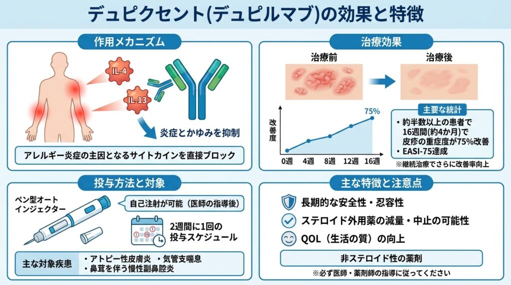 デュピクセント(デュピルマブ)は、中等症~重症のアトピー性皮膚炎に対して2018年に承認された画期的な治療薬です。