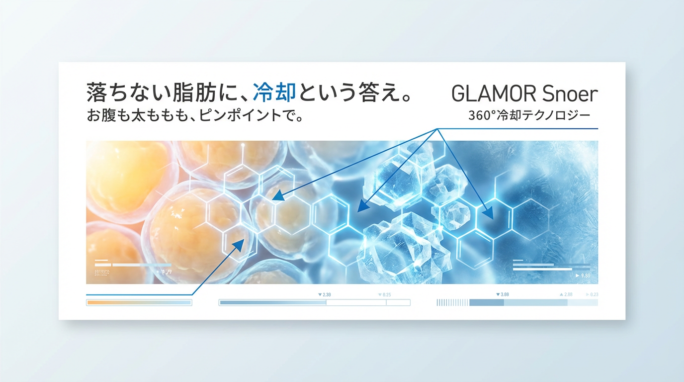 グラマースノエル(GLAMOR Snoer™)は、ハーバード大学医学部の研究者らが発表した「クライオリポライシス(脂肪冷却)理論」をもとに開発された、医療機関専用の脂肪冷却マシンです。