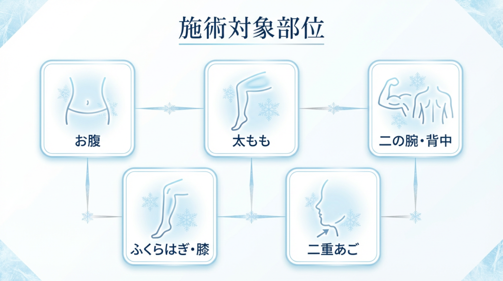 お腹・太もも・二の腕・背中のはみ肉・二重あごなど、幅広い部位に対応。細かい部位の部分痩せも可能です。