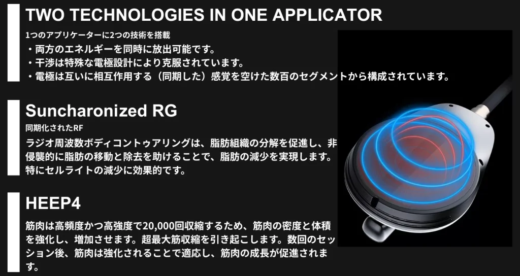 脂肪を減らしながら筋肉を増やす、従来の痩身機器では難しかったアプローチを1回の施術で実現します。