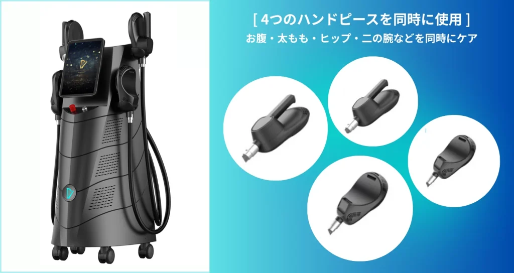 最大4つのアプリケーターを同時使用可能。お腹と太ももを一緒にケアするなど、30分で複数部位を施術できます。